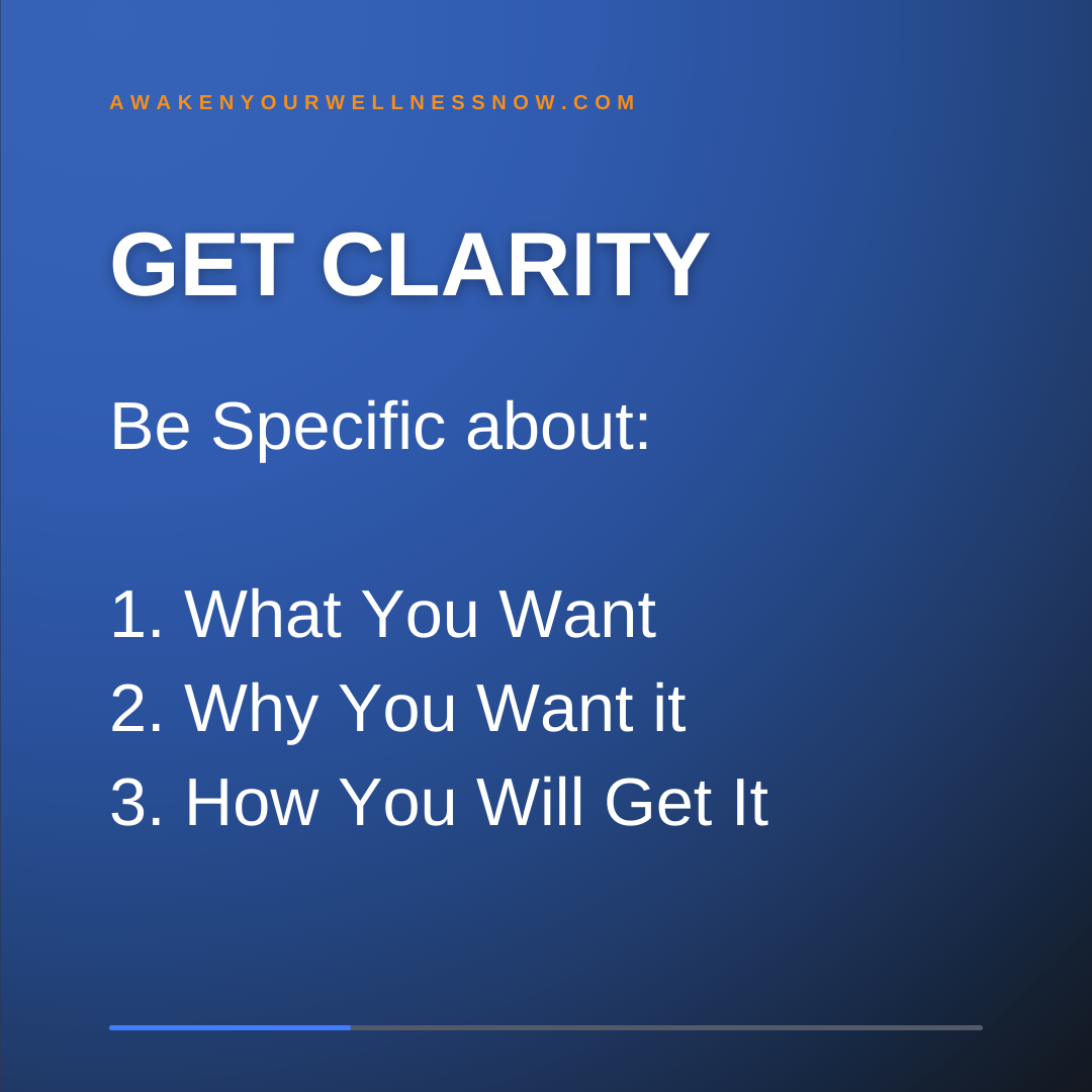 So remember with clarity, it’s first the WHAT, and then the WHY. And that’s going to give you more clarity as to how you’re going to accomplish that.