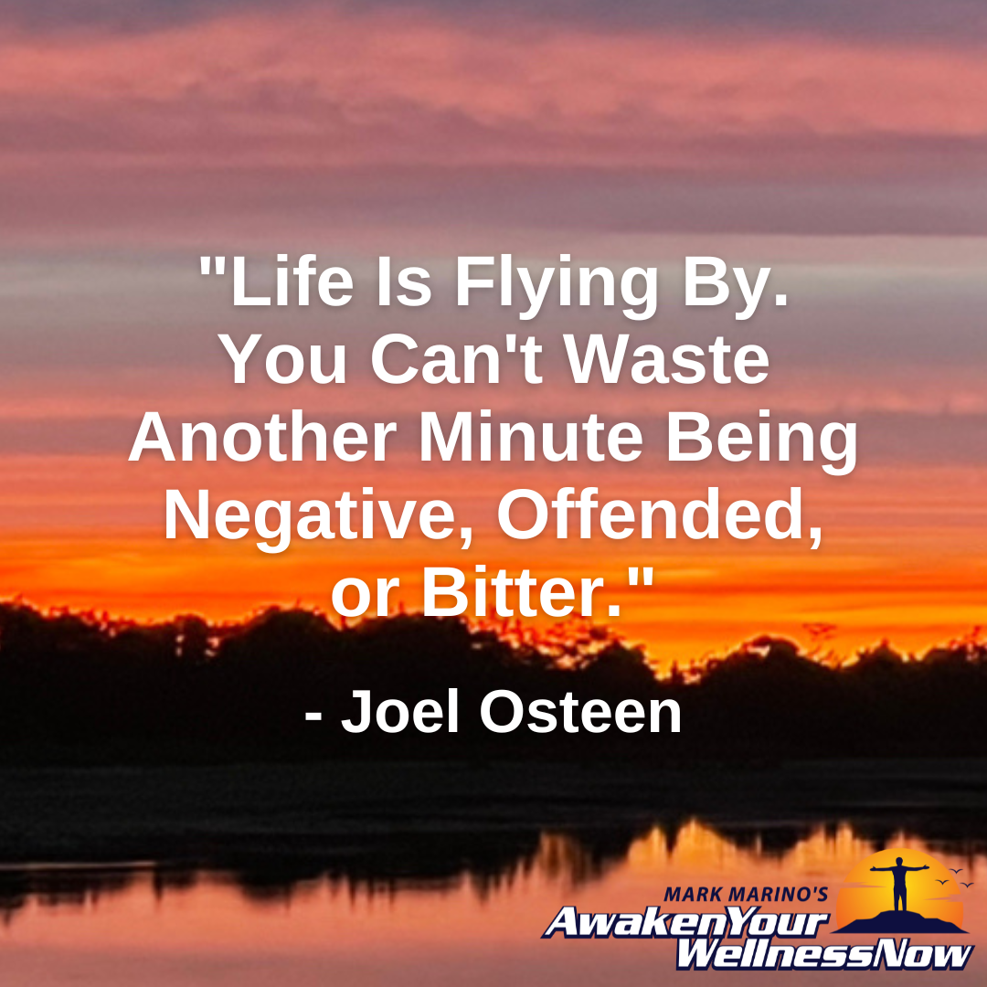 “life is flying by you. You Don’t have time to waste another minute on being negative, offended or bitter.”